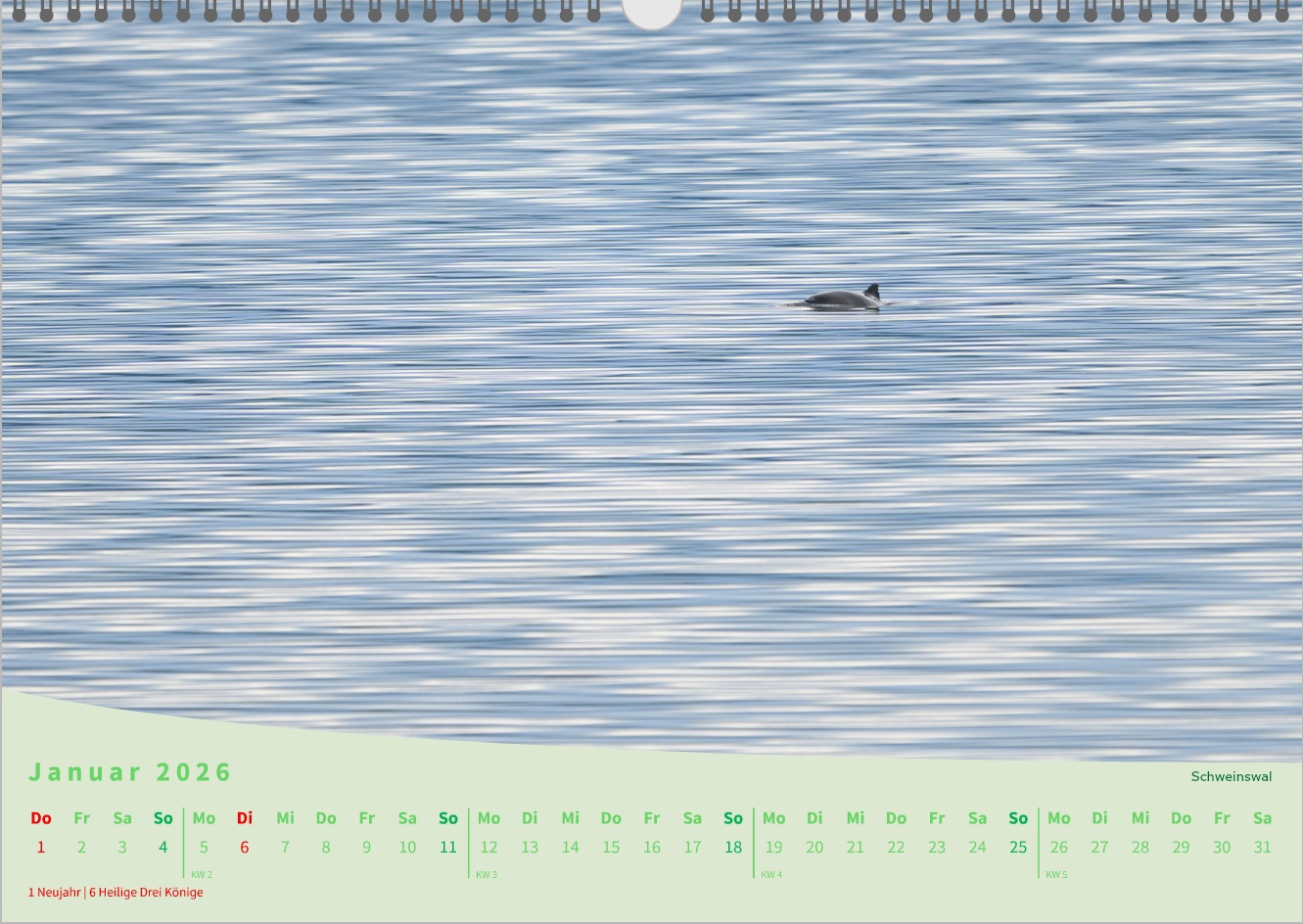 • Motive: 13 Bilder (1 Deckblatt, 12 Monatsblätter)