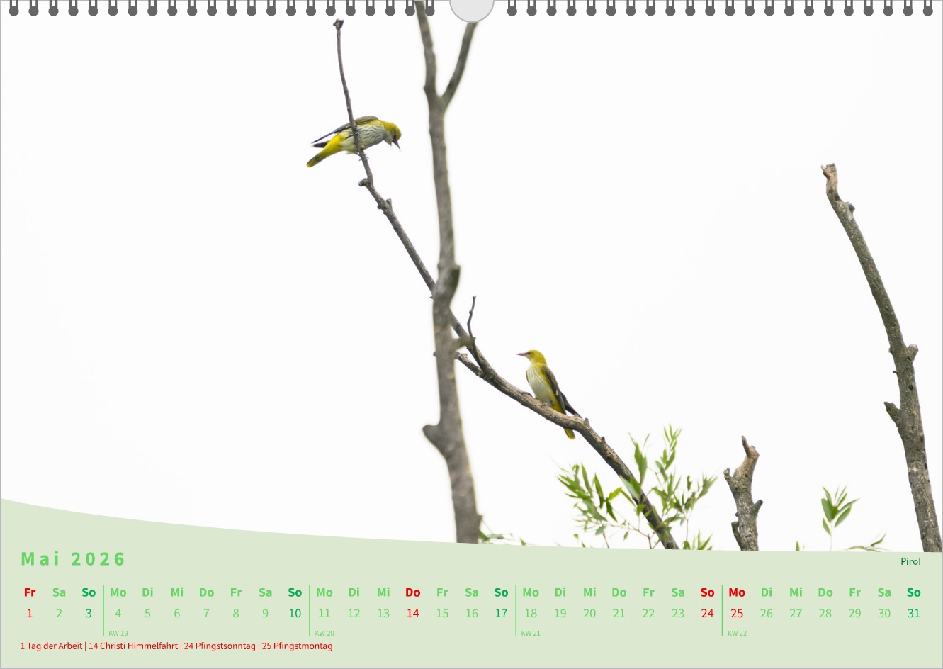 Komm mit mir mit, auf eine Reise durch die Natur, um genauer zu sein dem Tierreich! Jeden Monat wartet ein neues Motiv auf dich. Eines haben alle abgebildeten Tiere gemeinsam – sie sind alle WILDLIFE! Keine Anfütterung, kein Gehege, nix. Die Bilder wurden von mir fotografiert, einem Fotografen aus Waiblingen. Auf jedem Kalenderblatt findest du Angaben zum jeweiligen Motiv (Tiername).